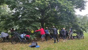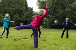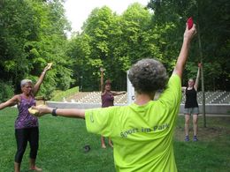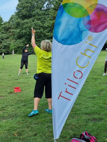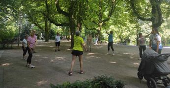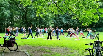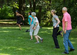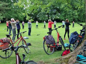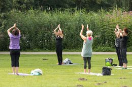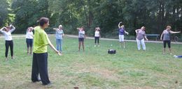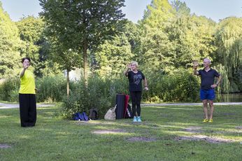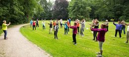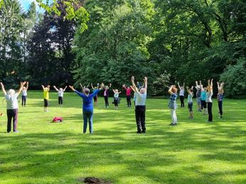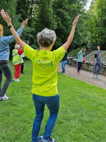 Neu als Veranstaltungsfläche war in diesem Jahr der Riegerpark. Auch hier ließen sich die Besucherinnen und Besucher nicht von ein paar Regentropfen irritieren. „Gütersloher sind eben echte Outdoor-Optimisten – wenn’s regnet, wird’s halt ein bisschen mehr ‚Aqua-Fitness‘“, so Britta Thieme vom Fachbereich Sport der Stadt Gütersloh augenzwinkernd. „Es ist einfach schön, in der Natur zu sein, egal, bei welchem Wetter. Das macht den besonderen Charme von ‚Sport im Park‘ aus“, meint Teilnehmerin Nadine, die sich trotz eines drohenden Schauers tapfer zu „Qi Gong“ aufgemacht hat.