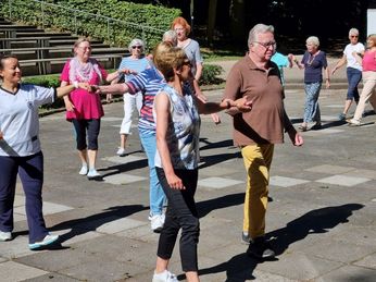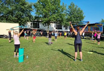„Bei Line Dance, Aerobic, Zumba oder dem Sommer-Fit-Mix zählten wir mehrmals zwischen 40 und fast 70 Teilnehmende“, berichtet Vanessa Moutogeorgos vom Kreissportbund Gütersloh erstaunt über die hohe Resonanz. „Wir hatten befürchtet, dass uns das Wetter einen Strich durch die Rechnung machen könnte. Aber die Leute waren trotzdem mit viel Freude dabei.“