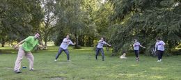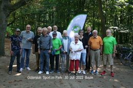 Gütersloh (gpr). „Schlechtes Wetter gibt’s nicht, nur schlechte Kleidung“, heißt es im Volksmund. Und so ließen sich rund 3.500 Sportlerinnen und Sportler die Stimmung nicht vermiesen und besuchten trotz dunkler Gewitterwolken oder Nieselregen die zahlreichen Angebote der zehnten Jubiläumsausgabe von „Sport im Park“, die vom Kreissportbund Gütersloh und dem Fachbereich Sport der Stadt Gütersloh veranstaltet wurde. „Wir wissen schon lange: Gütersloh ist wetterfest. Aber dieses Jahr haben unsere Teilnehmenden das wirklich sehr eindrucksvoll bewiesen“, freut sich Jennifer Jones vom Kreissportbund Gütersloh. Vom 14. Juli bis 10. August verwandelten sich sieben grüne Standorte der Stadt in offene Sportflächen. Von Aerobic bis Zirkeltraining, von Boule bis Zumba – über 200 kostenfreie Angebote in 40 Sportkategorien standen auf dem Programm und das täglich von montags bis sonntags.
