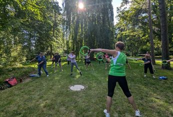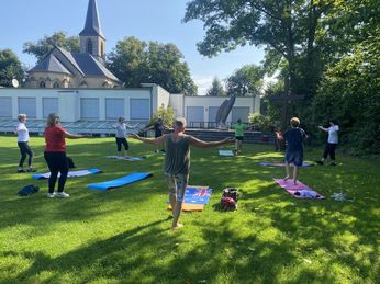 Auch in diesem Jahr waren die angebotenen Kurse generationsübergreifend gestaltet. Neben den traditionellen Uhrzeiten von 10 bis 11 Uhr und 18 bis 19 Uhr gab es in diesem Jahr Angebote für Kinder erstmals von 17 bis 18 Uhr, was bei vielen Familien großen Anklang fand. „An uns war der Wunsch nach etwas früheren Zeiten für die Kids herangetragen worden, was wir zusammen mit unseren Übungsleitungen natürlich gerne umgesetzt haben“, sagt Jennifer Jones und freut sich, dass bei „Family Fit“, der „Spielekiste“ oder „Spiel & Sport für Kids“ die Wiesen oft genauso voll waren wie bei den Morgen- und Abendkursen für Erwachsene.