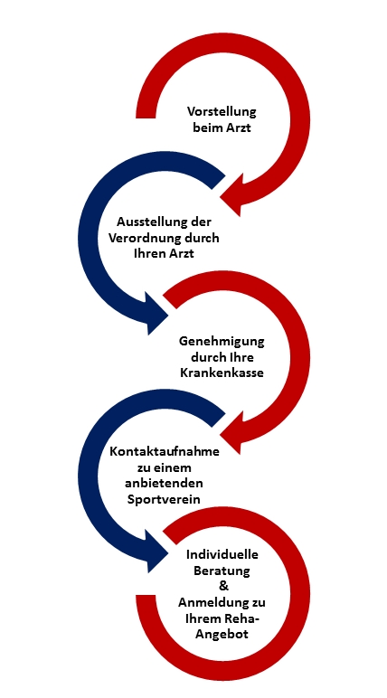 Verordnung und Teilnahme - Gesundheit stärken auf Rezept: Wenden Sie sich an Ihren Arzt. Dort erhalten Sie eine Verordnung für den Rehabilitationssport (Muster 56). Nach Bewilligung der Verordnung durch Ihre Krankenkasse ist die Teilnahme an unserem Reha-Sportangebot für Sie kostenfrei. Eine Mitgliedschaft in dem jeweils anbietenden Sportverein ist für die Dauer der Verordnung nicht verpflichtend, gleichwohl auf freiwilliger Basis möglich und im Sinne des Rehabilitationserfolges auch wünschenswert.