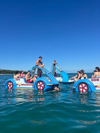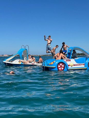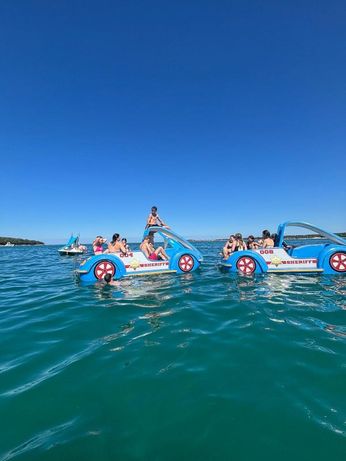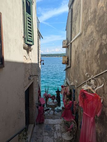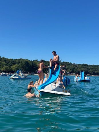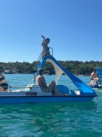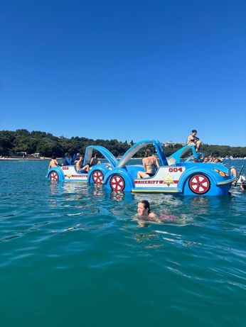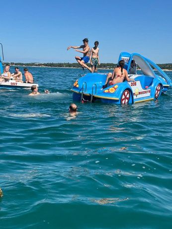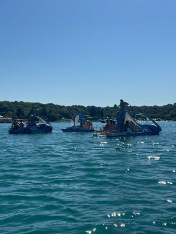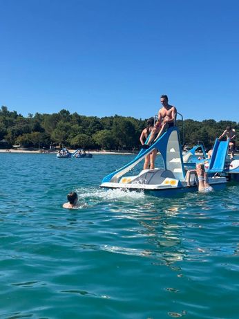Fahrten in die nähere Umgebung, z.B. nach Porec mit seiner wunderschönen Altstadt, dem Hafen und natürlich dem üblichen Touristenrummel unternehmen wir mit unserem eigenen Bulli. Der Platz bietet daneben auch noch weitere kostenpflichtige Angebote wie Bananaboot, Tretboot, Tennis, Minigolf, Reiten etc. oder auch Ausflüge mit dem Boot entlang der Küste, die vor Ort gebucht werden können.