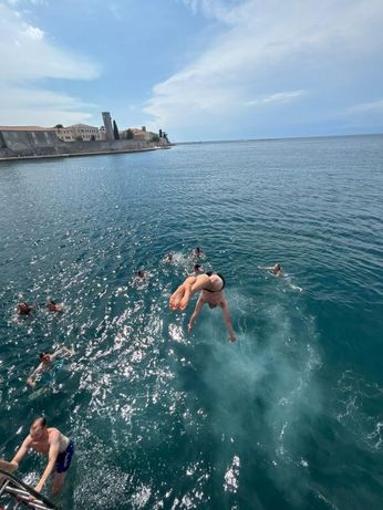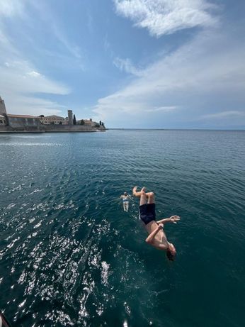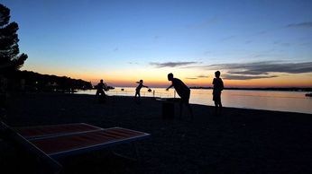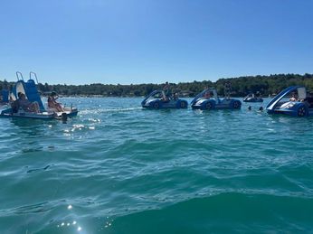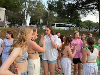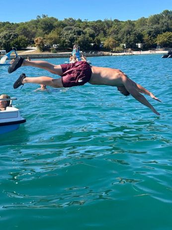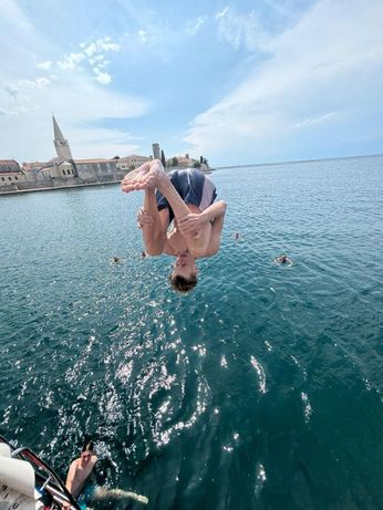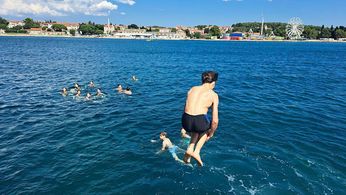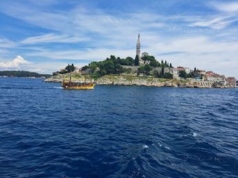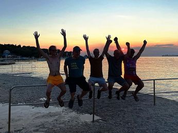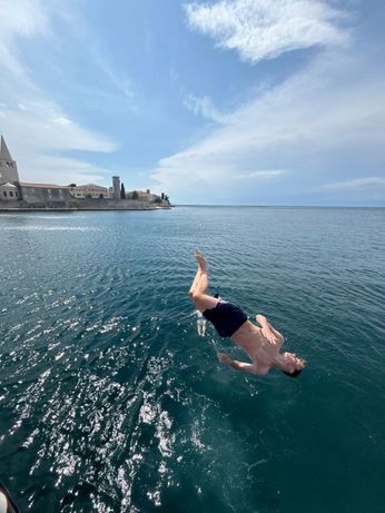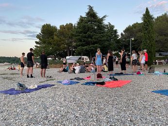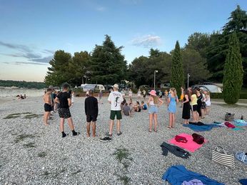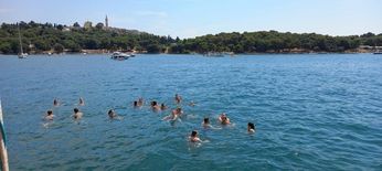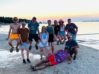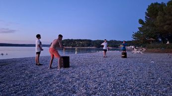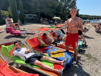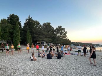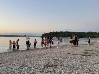 Mit unserer eigenen Ausrüstung fahren wir auf einen der schönsten Campingplätze Istriens. Gelegen zwischen Novigrad und Porec bietet unser Platz mit einem 3 km langen Naturkiesstrand unzählige Bademöglichkeiten. Neben unseren zahlreichen eigenen Aktivitäten stehen uns die Einrichtungen des Campingplatzes wie Poollandschaft, Animationsprogramm, Beachvolleyball, Multifunktionsfeld, Kino etc...kostenlos zur Verfügung.